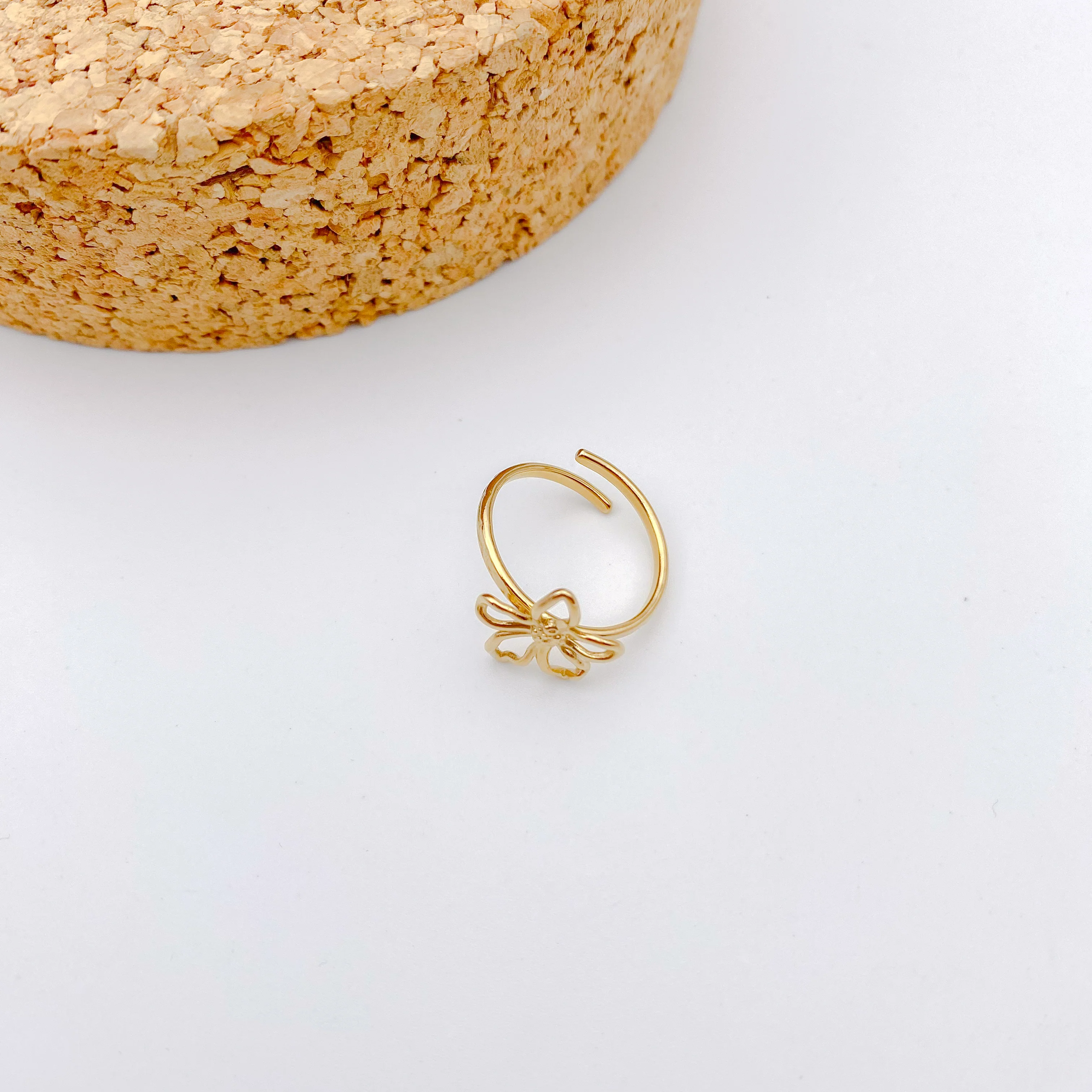 - Anneau fin texturé orné d'une fleur ajourée
