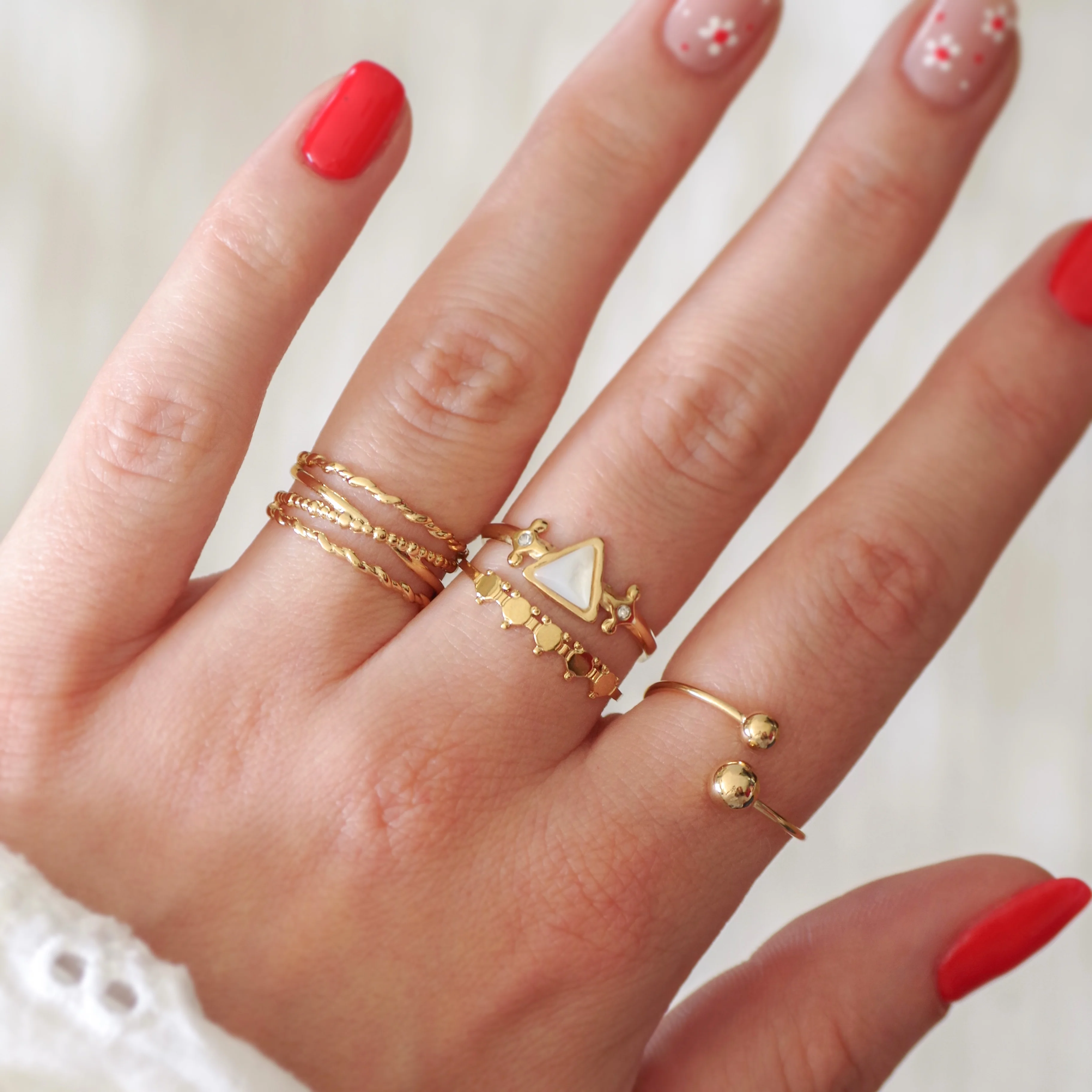 - Ajustable, cette bague se resserre ou s’agrandit de la taille 52 à 56