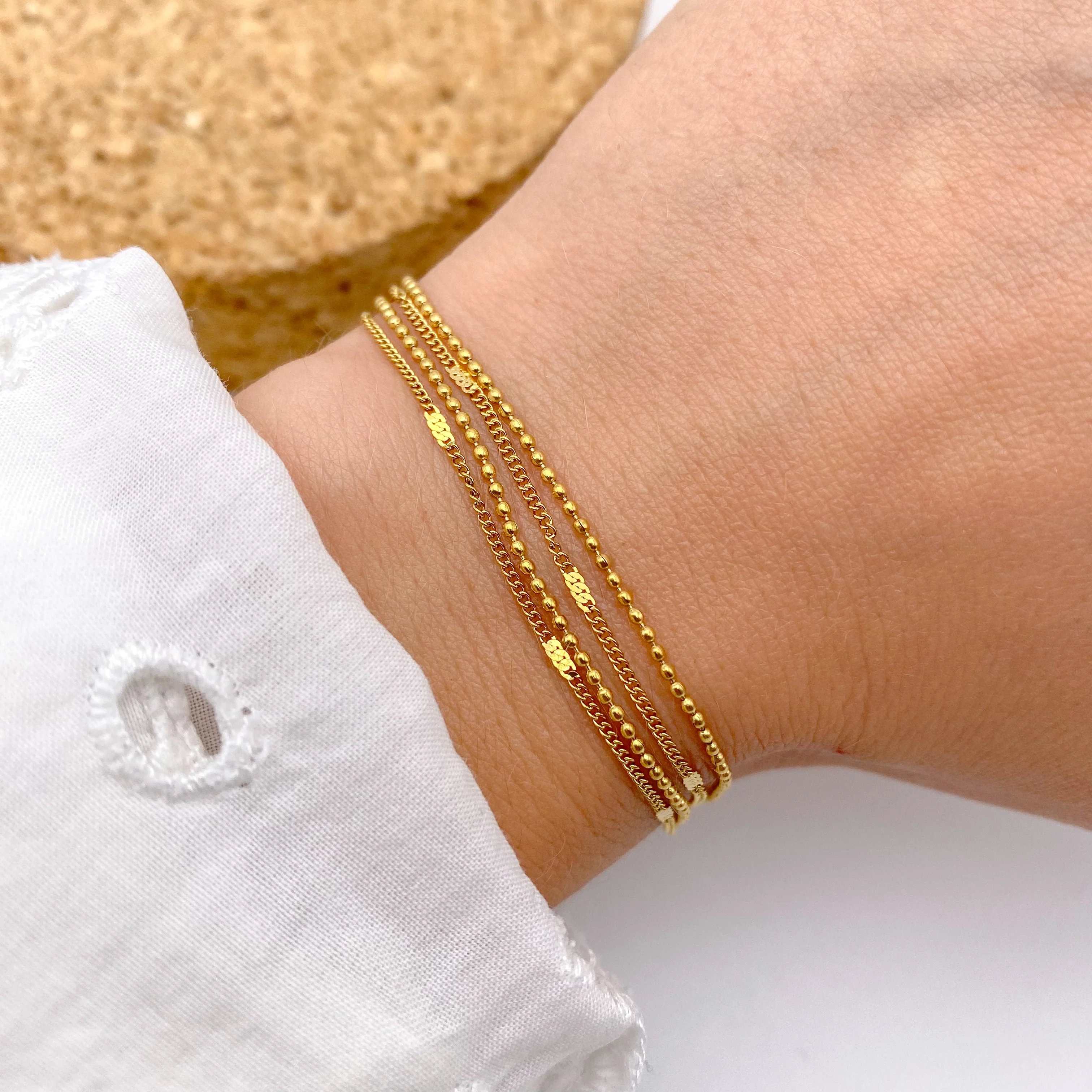 - Composé de quatre rangs (2 chaînes maille bille et 2 chaînes maille pincée)